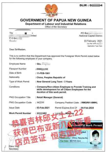 恭喜广东邱女士获巴布亚新几内亚看店员签证