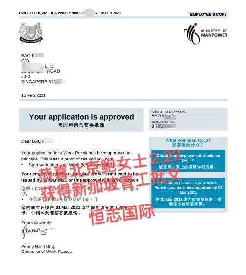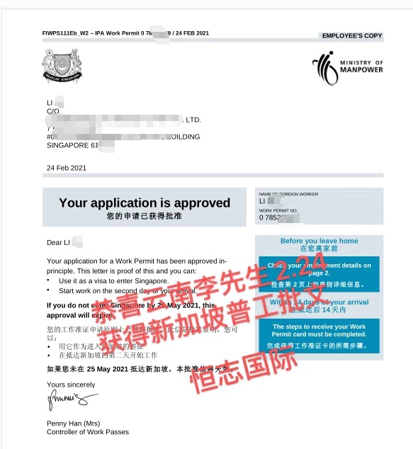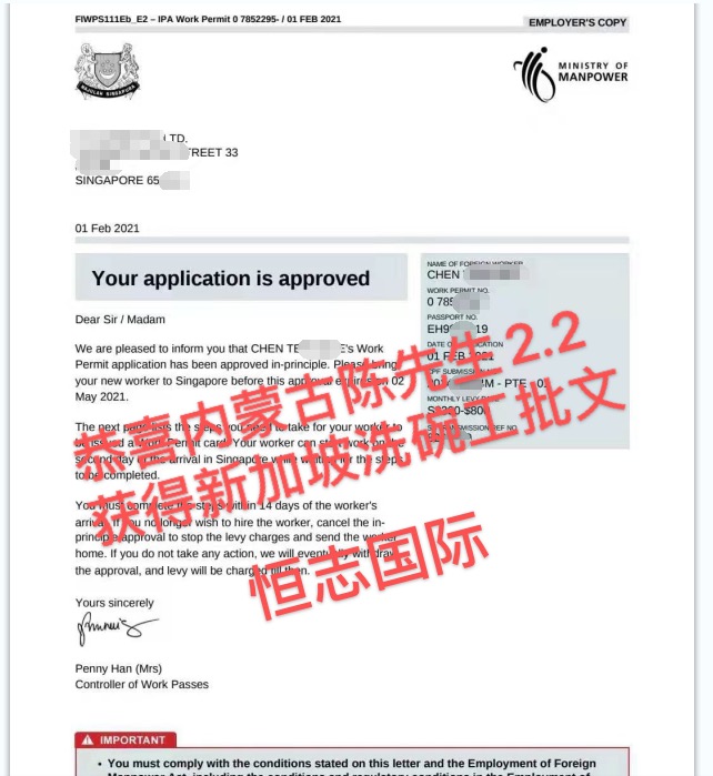 恭喜内蒙古陈先生获得新加坡洗碗工批文
