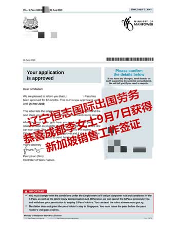 恭喜江苏杨女士获新加坡按摩学徒工签