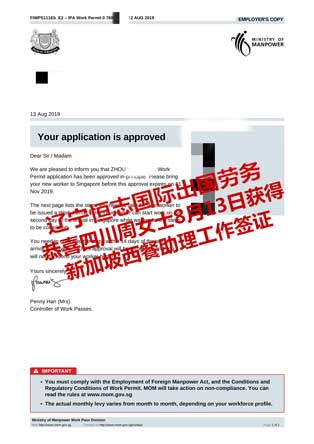 恭喜铁岭张女士获新加坡机舱保洁工签