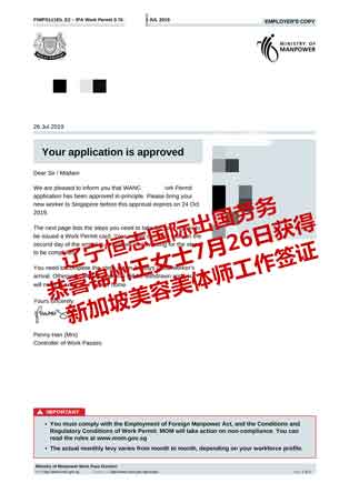 恭喜铁岭黄先生获新加坡面粉厂普工工签