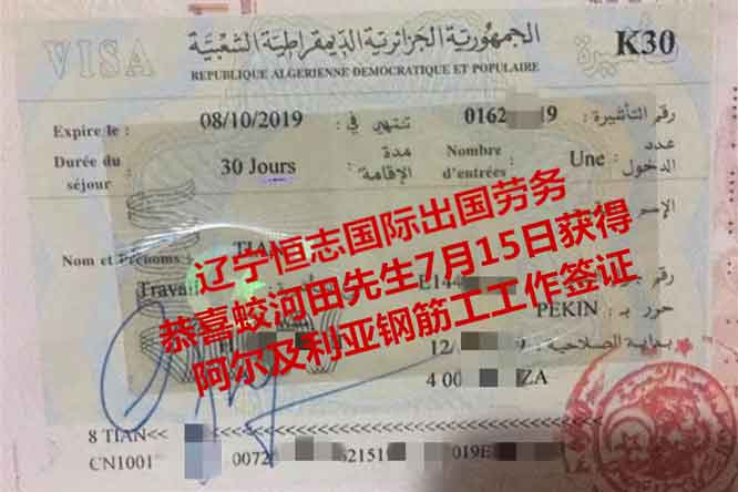恭喜江苏汪先生获阿尔及利亚钢筋工工签