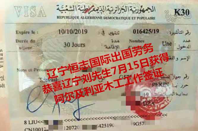恭喜辽宁刘先生获阿尔及利亚木工工签