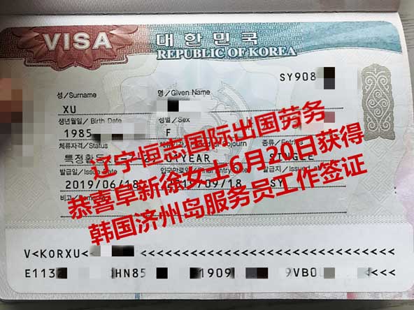 恭喜阜新徐女士获韩国济州岛服务员工签