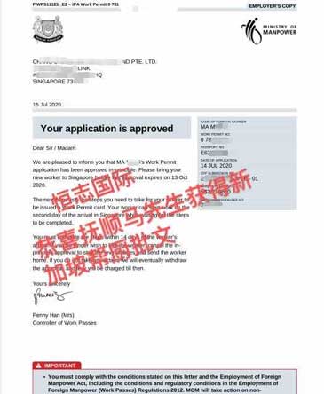 恭喜河南徐先生获新加坡普工工签
