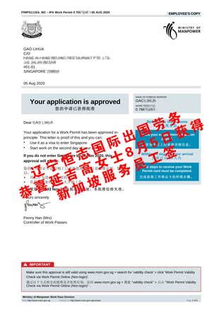 恭喜黑龙江王先生获新加坡普工工签