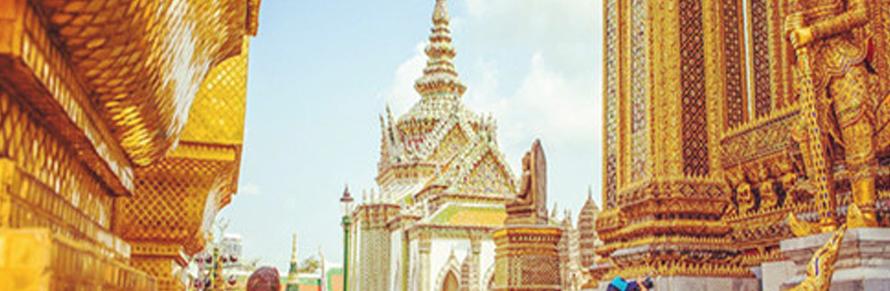玉佛寺(WatPhraKaeo)位于曼谷大王宫的东北角,是泰国最著名的佛寺,也是泰国三大国宝之一。玉佛寺是泰国佛教最神圣的地方,是查库里王朝的守护寺和护国寺,建于1784年的玉佛寺是泰国大王宫的一部分,面积约占大王宫的1/4。玉佛寺是泰国王族供奉玉佛像和举行宗教仪式的场所,因寺内供奉着玉佛而得名。寺内有玉佛殿、先王殿、佛骨殿、藏经阁、钟楼和金塔。玉佛殿是玉佛寺的主体建筑,大殿正中的神龛里供奉着被泰国视为国宝的玉佛像。玉佛高66厘米,阔48厘米,是由一整块碧玉雕刻而成。每当换季时节,泰国国王都亲自为玉佛更衣,以保国泰民安。每当泰国内阁更迭之际,新政府的全体阁员都要在玉佛寺向国王宣誓就职。每年5月农耕节时,国王还要在这里举行宗教仪式,祈祷丰收。寺内四周有长约一公里的壁画长廊,上面绘有178幅以印度古典文学《罗摩衍那》史诗为题材的精美彩色连环画,并附有泰文译诗。玉佛寺内的几块大瓷屏风上彩绘着中国《三国演义》的故事。